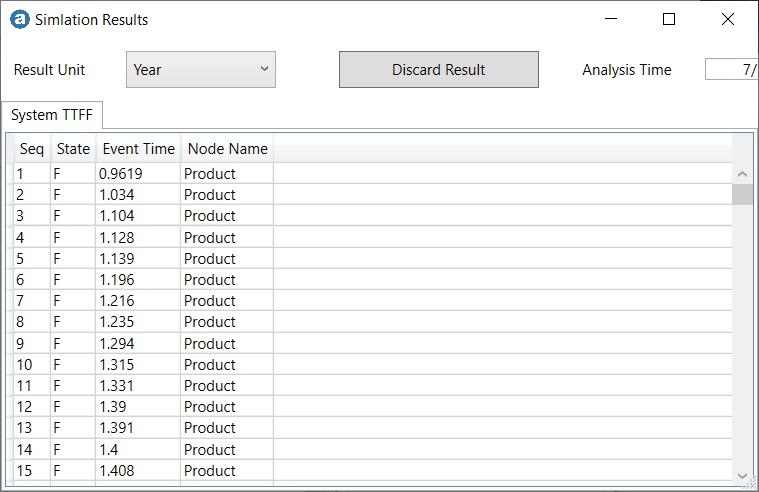 This example uses user define discrete CDF to describe the Flowrate (usage) distribution. 200 random failure times (field-return failures) are generated through Time-To-First-Failure simulation in AeROS software. Life Data Analysis is applied to this Time-To-Failure dataset to obtain the field-return distribution.