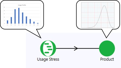 The Profile Node "Usage Stress" generates random usage level stress (Flowrate) based on usage distribution (to be defined in following section). The Product will fail according to its distribution with the reduced stress level (Flowrate). This process is repeated to generate field-return dataset.