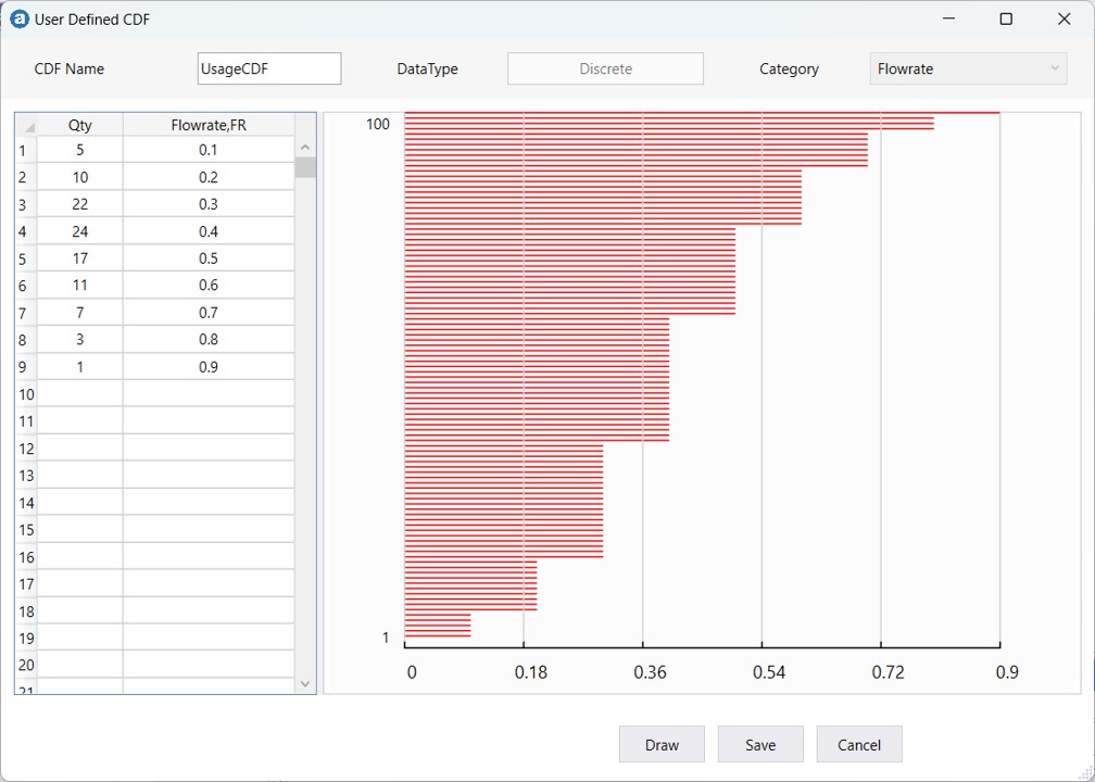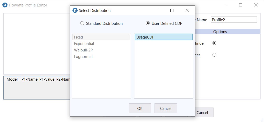 The first step is to create a discrete user-defined-CDF, and then apply it to the Flowrate Profile of Usage Stress (Profile Node).