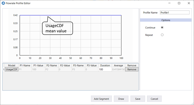 "UsageCDF" is assigned the first and only segment of this Flowrate Profile.