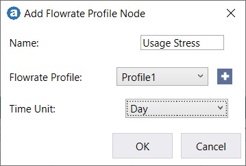 Note that the default Profile Name is "Profile1".The next step is to create Profile Node "Usage Stress" and assign Flowrate Profile "Profile1" to it.